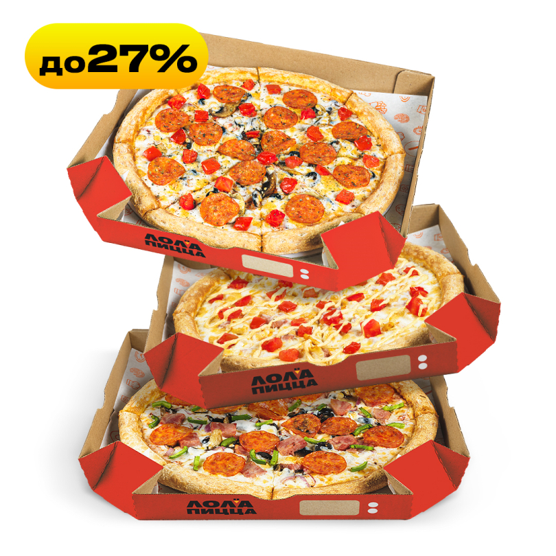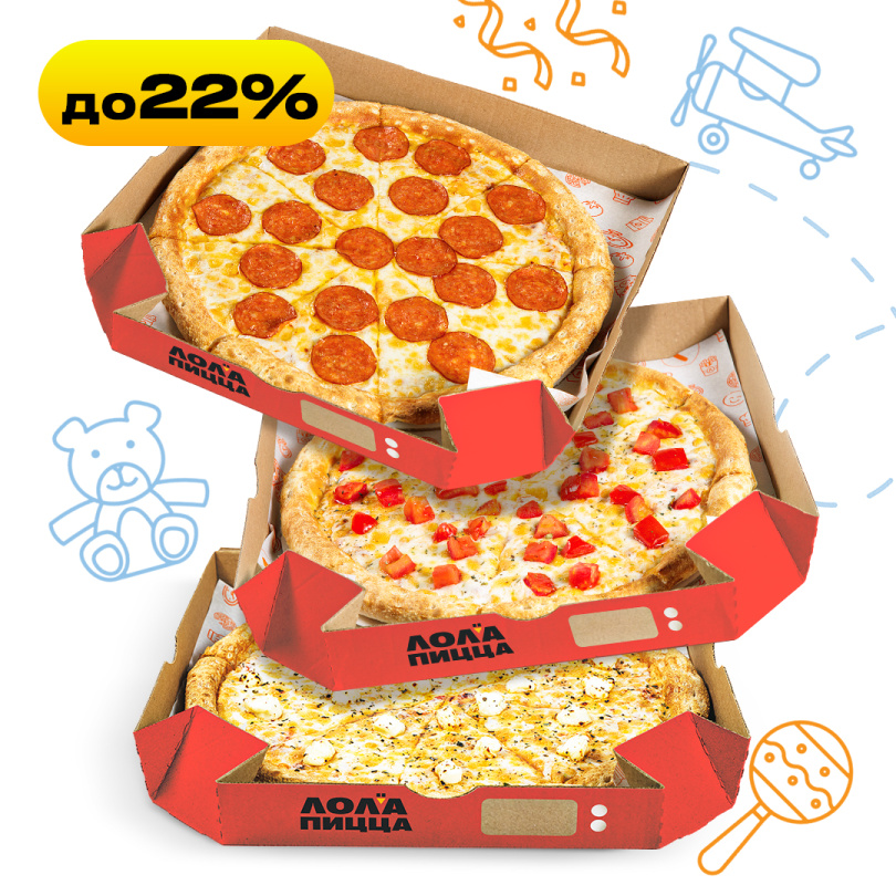 Конструктор комбо из трех пицц 25 см. Для компании из трех человекОт 929 ₽Выбери две любимые пиццы 30 см по приятной цене на компанию из 3-4 человек.От 999 ₽Конструктор комбо из трех пицц 30 см. Подойдет для компании из 5-7 человек.От 1399 ₽Популярный праздничный набор для детей из 3 пицц со СтикерпакомОт 1699 ₽Популярный праздничный набор для детей из 3 пиццОт 1599 ₽Собери комбо из трех пицц 35 см. Идеальный вариант для 8-10 человек.От 1849 ₽Собери комбо из 5 пицц 30 см по суперцене. Идеально для 10-12 человек.От 2499 ₽Конструктор комбо из 5 пицц 35 см по суперцене. Отличный способ угостить 12-15 гостей.От 2999 ₽Собери комбо из 7 пицц 30 см. Максимум вкуса и удовольствия для 15-17 человек.От 3399 ₽Конструктор комбо из 7 пицц 35 см. На компанию из 17-20 человек.От 4199 ₽Комбо из 10 пицц 30 см. Но не более 3 шт. одного видаОт 4699 ₽