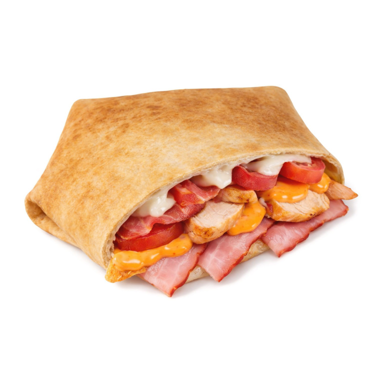 Энерг. ценность 223 ккал Белки 3.5 г Жиры 9 г Углеводы 32 г Вес 230 г От 249 ₽Горячий ролл, запеченный в печи. В пшеничной лепешке — цыпленок, бекон, нежная моцарелла, маринованный красный лук и пикантный соус барбекюiПищевая ценность на 100 г.Энерг. ценность 210.6 ккал Белки 12.2 г Жиры 9 г Углеводы 20.2 г Вес 160 г От 229 ₽Дети любят