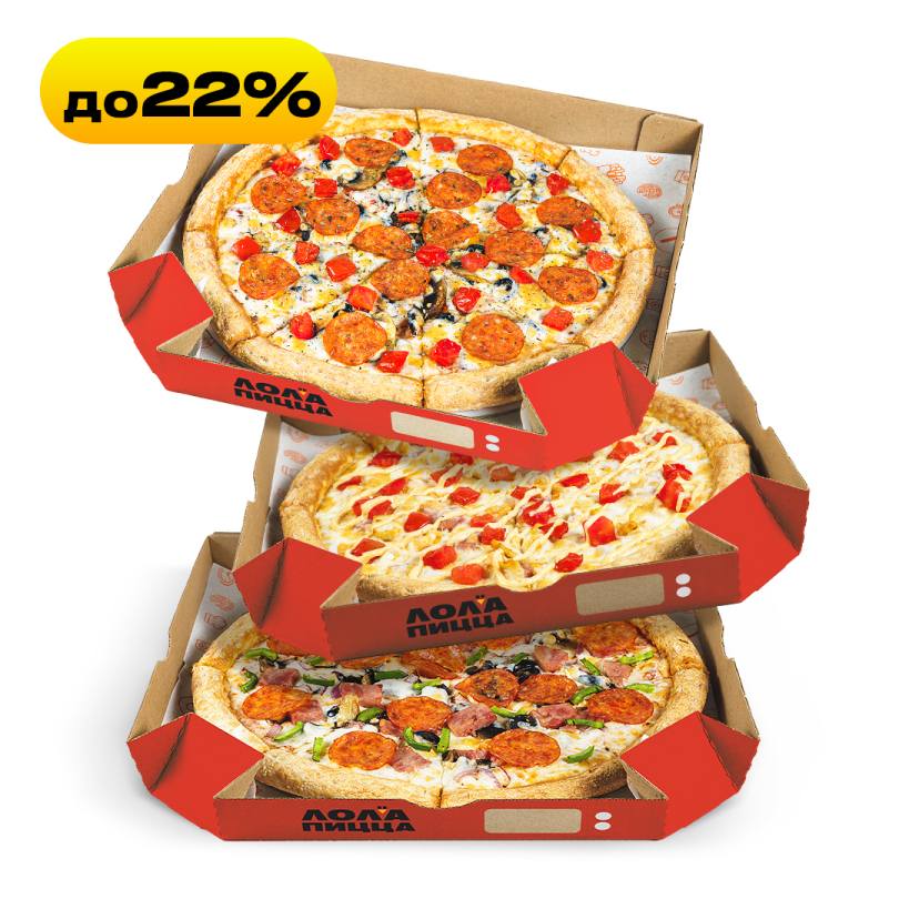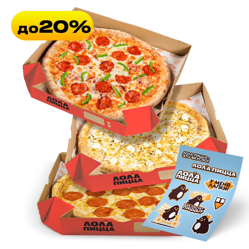 Пицца Лола Мини 20 см и закуска на выбор порадуют в обеденный перерывОт 469 ₽Пицца 25 см и закуска с напитком – идеальный обедОт 549 ₽Блюдо из категории «Ланч» и салат или суп на выбор – вкусно и сытноОт 479 ₽Две пиццы Лола Мини 20 см, большая закуска и два соуса на выборОт 690 ₽Две пиццы 25 см, большая закуска и два соуса на выборОт 890 ₽Два блюда из категории «Ланч» и два салата или супа на выборОт 959 ₽Пицца 30 см, большая закуска с двумя соусамиОт 849 ₽