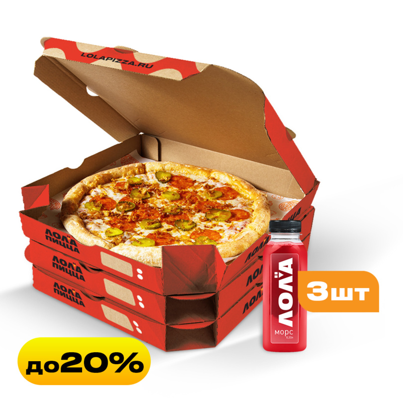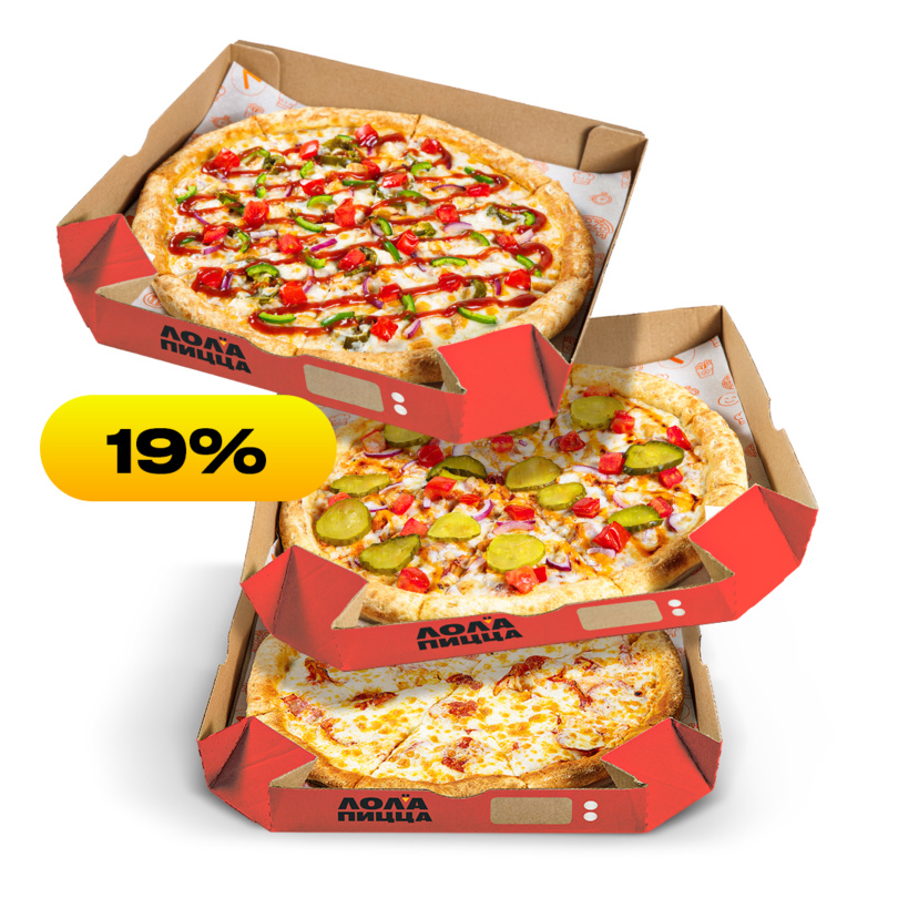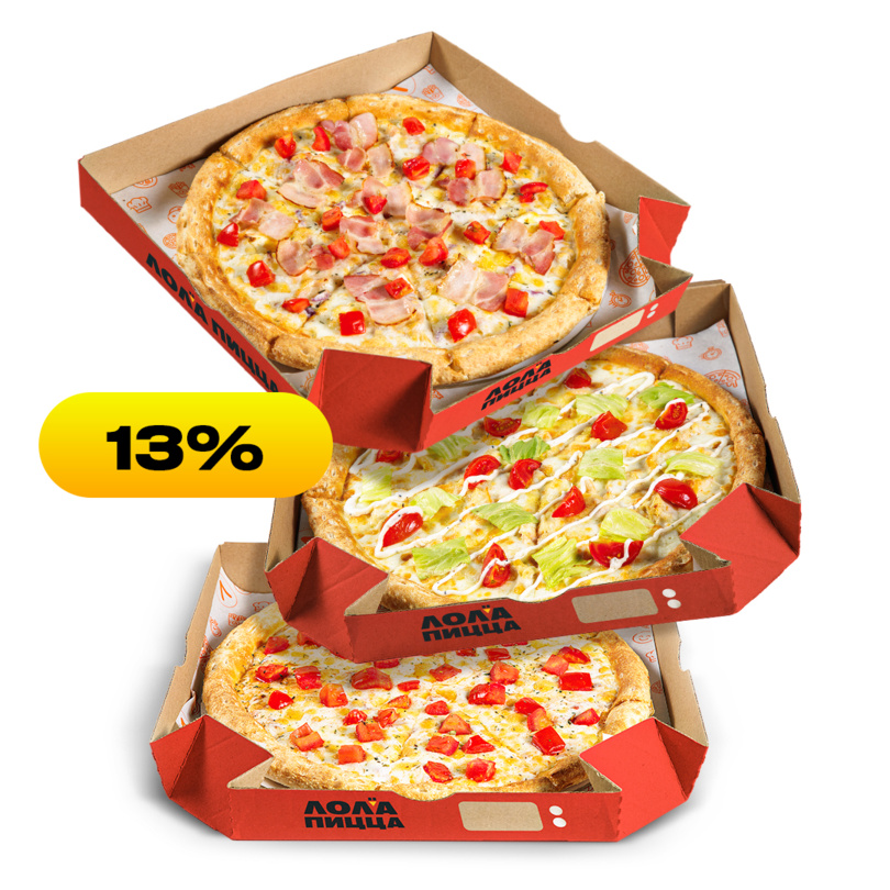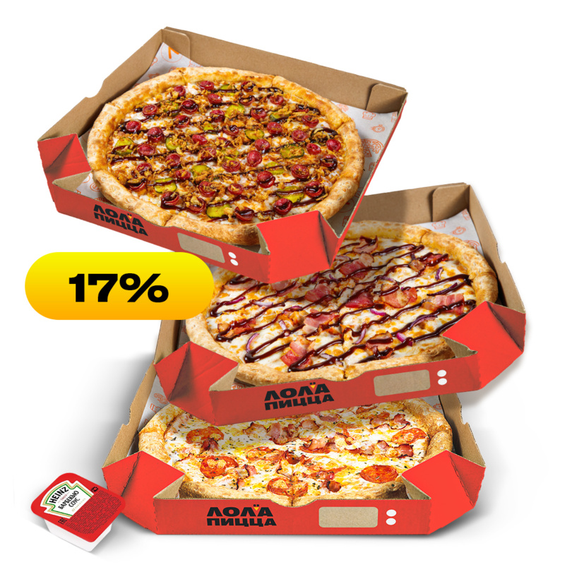 Конструктор комбо из трех пицц 25 см. Для компании из трех человек899 ₽Выбери две любимые пиццы 30 см по приятной цене на компанию из 3-4 человек.999 ₽Конструктор комбо из трех пицц 30 см. Подойдет для компании из 5-7 человек.1349 ₽Популярный праздничный набор для детей из 3 пицц со Стикерпаком1649 ₽Популярный праздничный набор для детей из 3 пицц1549 ₽Собери комбо из трех пицц 35 см. Идеальный вариант для 8-10 человек.1749 ₽Конструктор Комбо 3 пиццы 30см + 3 морса на выбор на любой вкус1699 ₽Собери комбо из 5 пицц 30 см по суперцене. Идеально для 10-12 человек.2499 ₽Конструктор комбо из 5 пицц 35 см по суперцене. Отличный способ угостить 12-15 гостей.2999 ₽Собери комбо из 7 пицц 30 см. Максимум вкуса и удовольствия для 15-17 человек.3399 ₽Конструктор комбо из 7 пицц 35 см. На компанию из 17-20 человек.4099 ₽Комбо из 10 пицц. Но не более 3 шт. одного вида4699 ₽